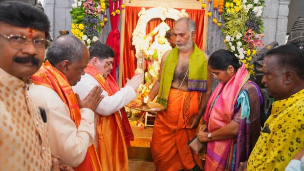 VGన్యుస్: సికింద్రాబాద్ ఆవులమందలో శ్రీ వాసవి కన్యకా పరమేశ్వరి ఆలయంలో ఆదివారం వాసవిమాత జయంతి సందర్భంగా నిర్వహించిన వేడుకల్లో మంత్రి పొన్నం ప్రభాకర్ పాల్గొన్నారు. ఆలయ అర్చకులు మంత్రికి పూర్ణ కుంభంతో స్వాగతం పలికారు. అనంతరం మంత్రి పొన్నం ప్రభాకర్ అమ్మవారికి ప్రత్యేక పూజలు నిర్వహించారు. ఈ కార్యక్రమంలో తెలంగాణ రాష్ట్ర ఆర్యవైశ్య కార్పొరేషన్ ఛైర్మన్ కల్వ సుజాత గుప్త, పోలీస్ హౌజింగ్ కార్పొరేషన్ మాజీ ఛైర్మన్ కోలేటి దామోదర్ గుప్త తదితరులు పాల్గొన్నారు.